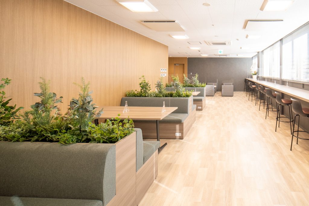 様々な人数でゆったりくつろげるスペースや、軽く飲食できるコーナー、いつでも利用できるシャワー室完備の更衣室を用意しています。換気を含め感染対策を行い、安心してお過ごしいただけます。